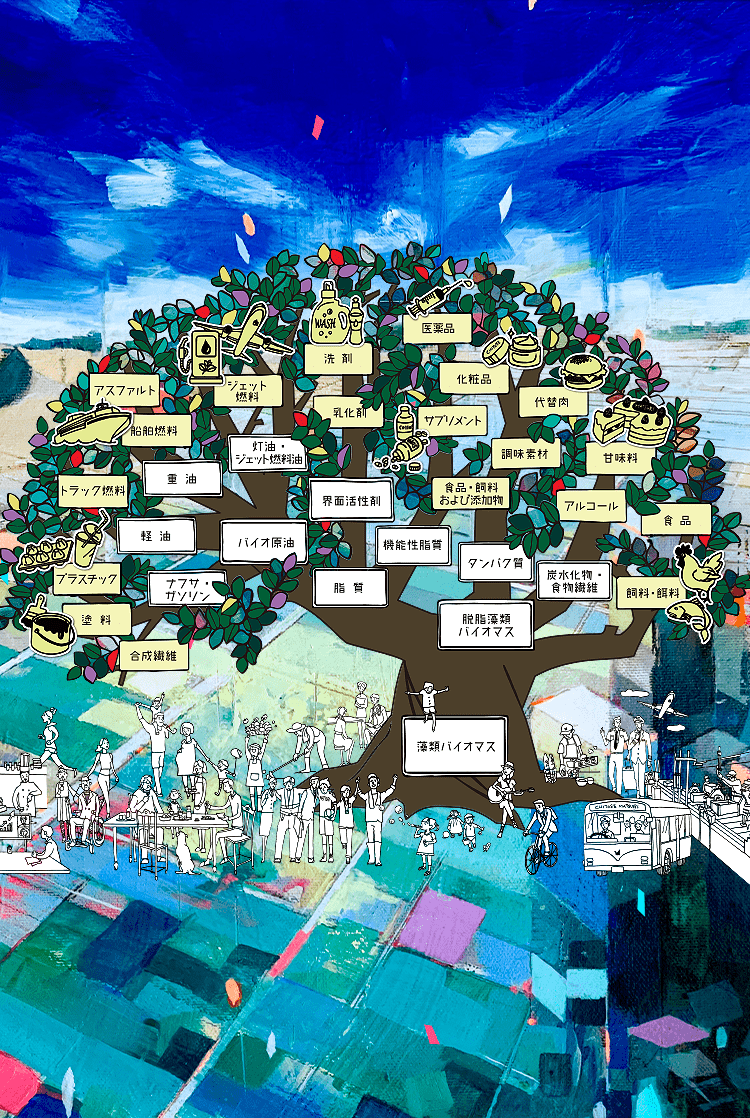 藻がこの社会に浸透した先には、環境対策にとらわれることなく、千年先までもっと自由に、もっと豊かに生きられる世界が待っています。